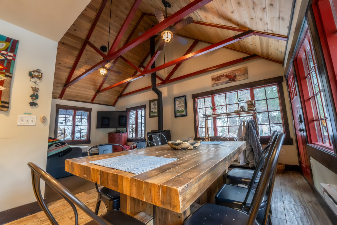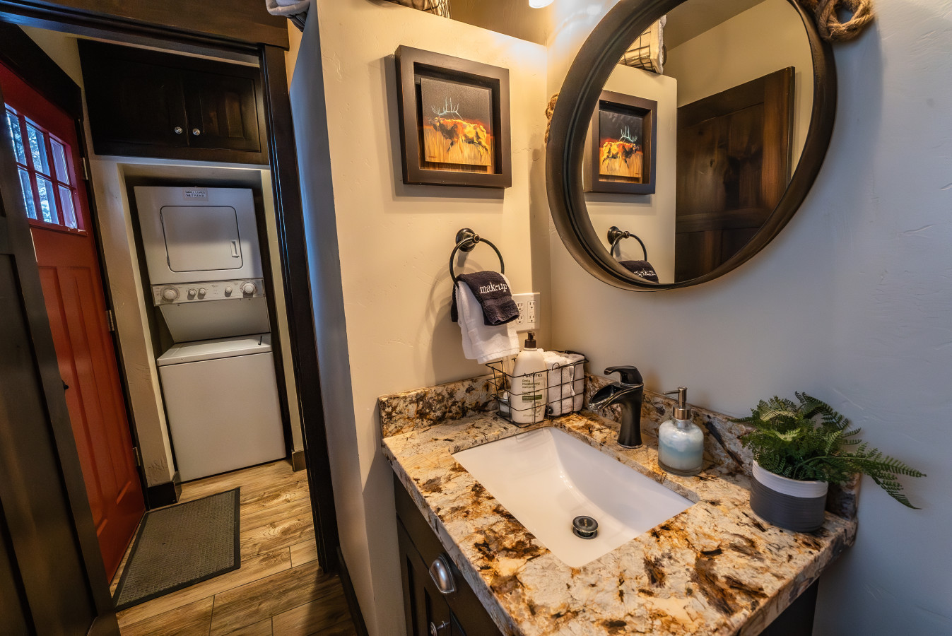 Modern and polished kitchen with a coffee bar and solid wood dining table, hang out worthy living room, upscale mountain décor, all of today’s conveniences and plenty of lovely outdoor space in the natural surroundings of the mountain. One of our guest favorites, this cabin will imprint on your heart.