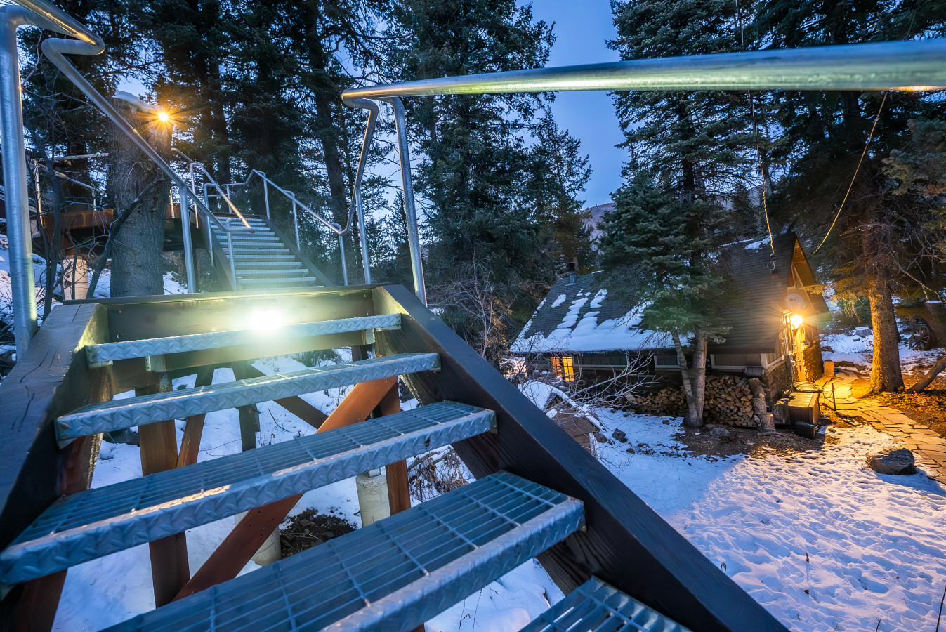 This cabin is perched at the bottom of a sturdy metal staircase. Wind your way down through the meadow where you can hear the stream flowing year-round, to the sweetest little cabin and sit on the deck to observe the wildlife and pollinators. A few steps away is your own hot tub to soak in and watch the snowflakes fall. Just a five minute drive from Sundance Resort where you will find restaurants, skiing, live music, art studio, gift shop, spa, horseback riding, snowshoeing, cross country skiing, hiking, ziplining, and flyfishing.
