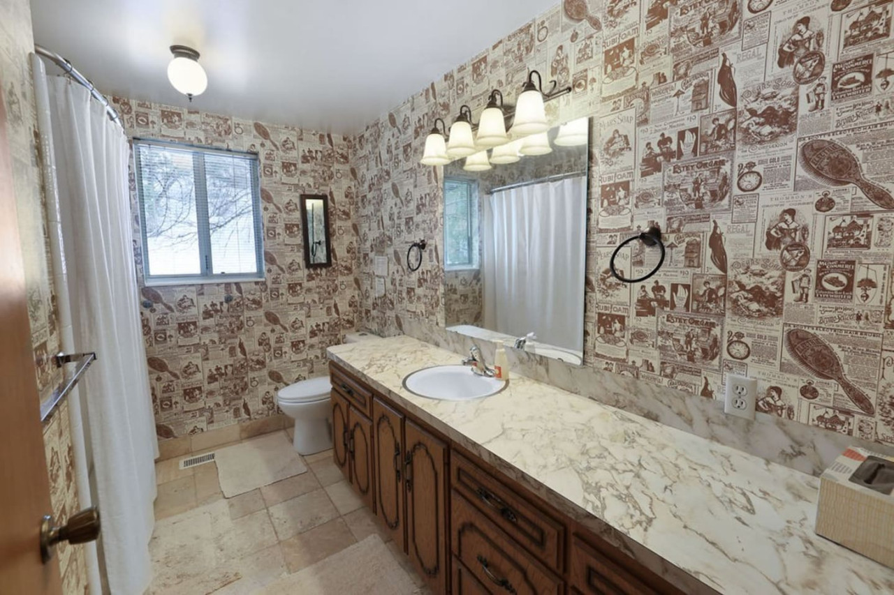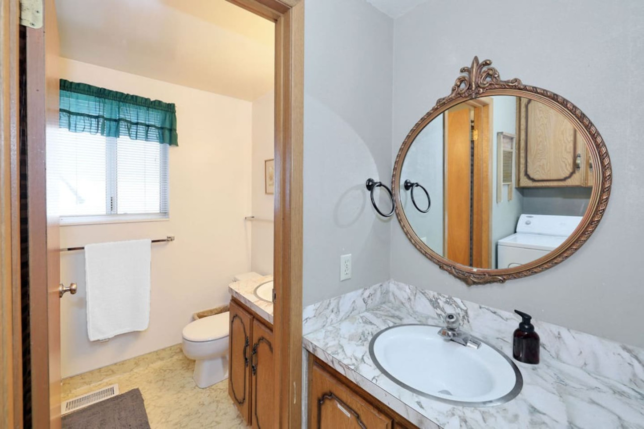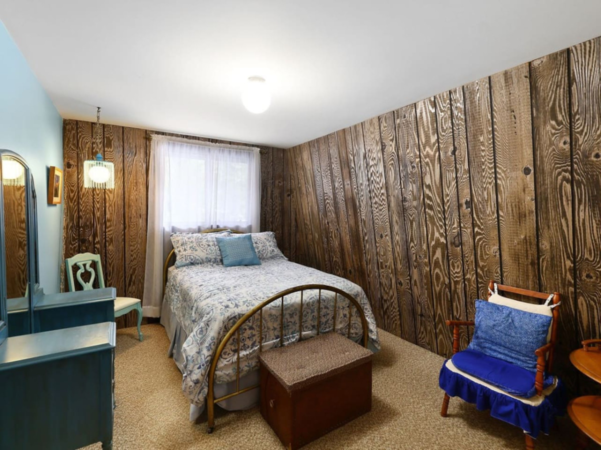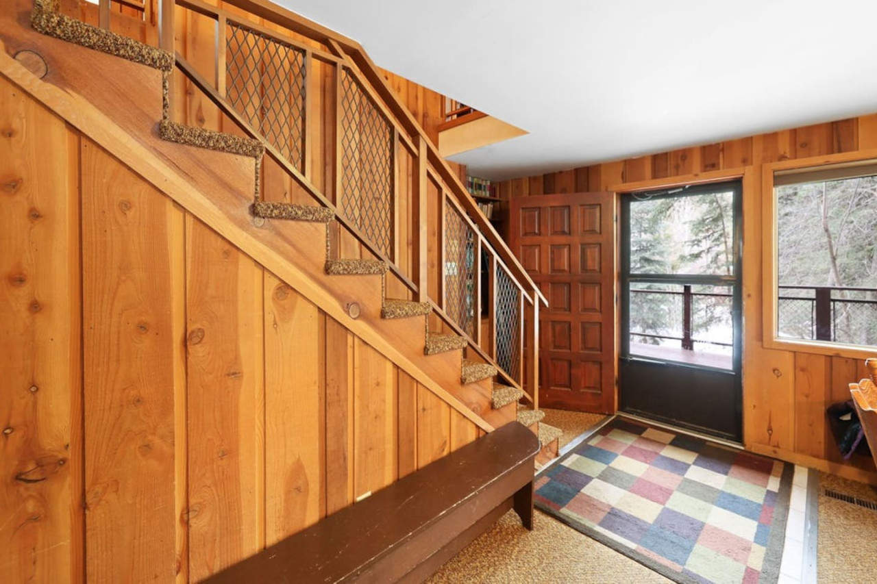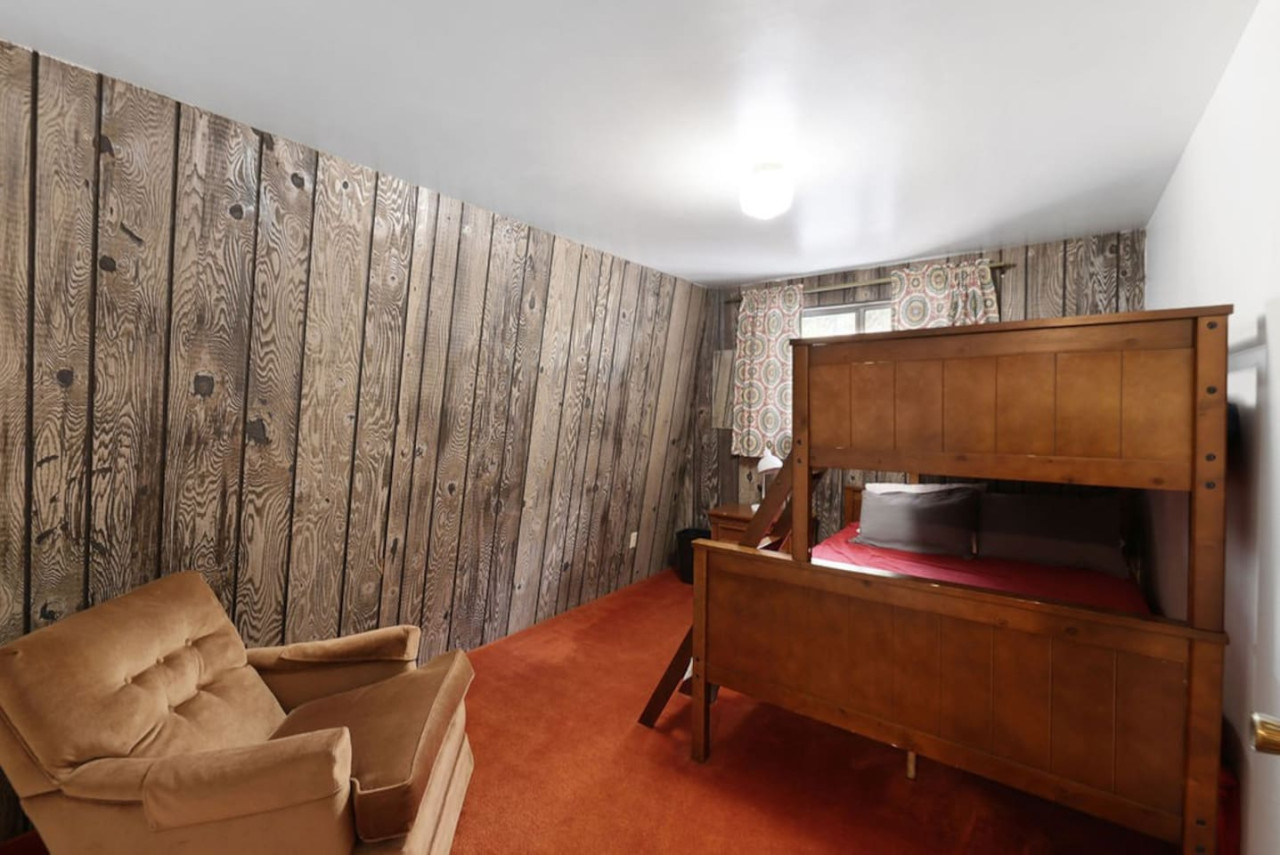 Warm wood paneling, upstairs and main level living rooms, 1 bathroom upstairs, 1 bathroom main level, a large yard, galley kitchen, and the stream running through it, this place is welcoming for family gatherings, “friends-givings,” and provides a familiar and comforting stay.