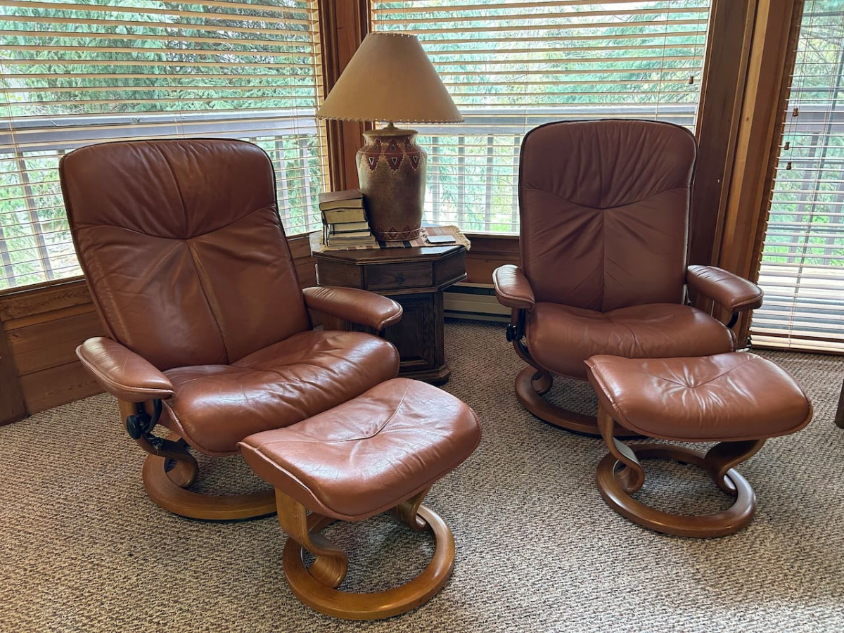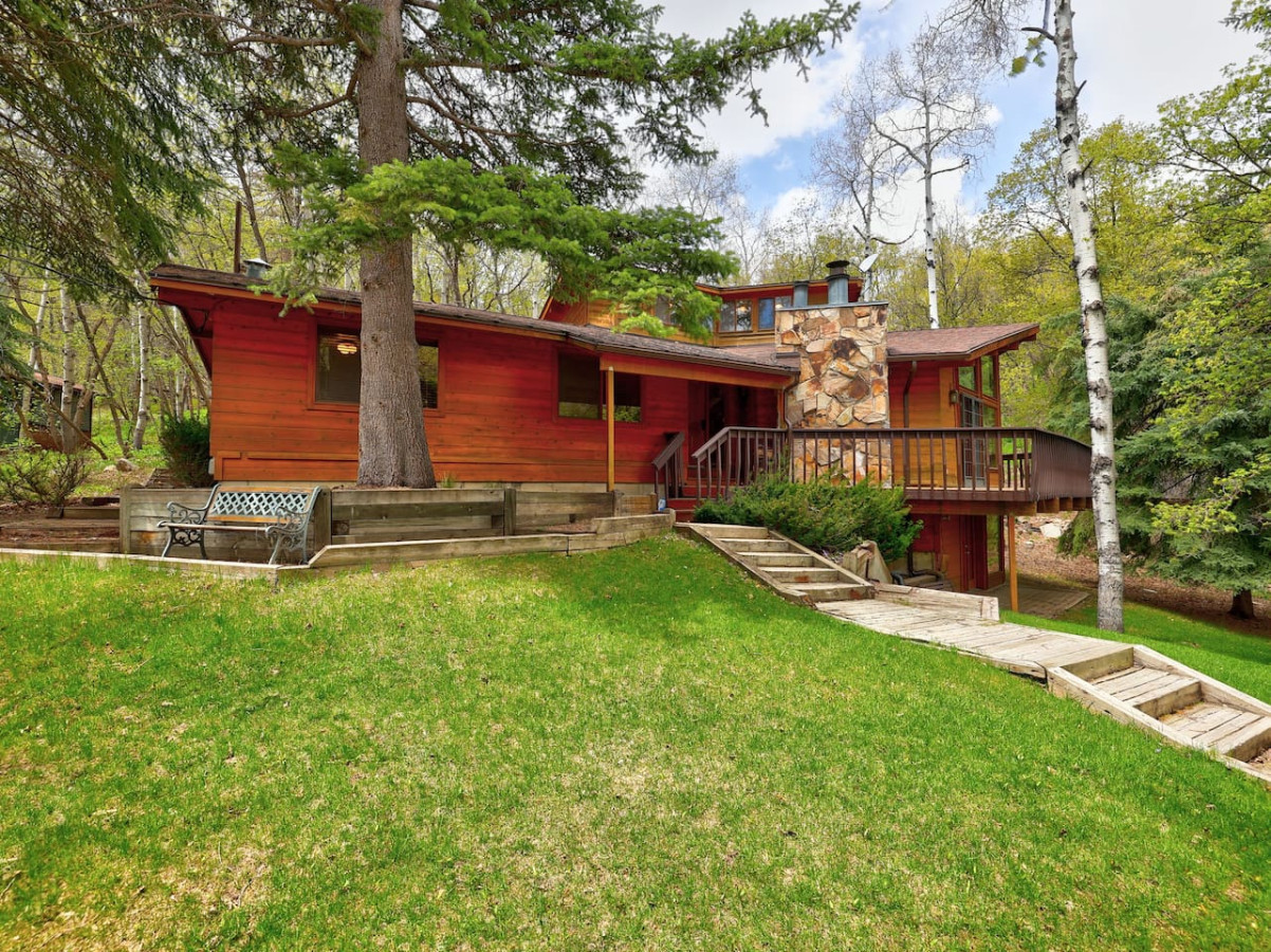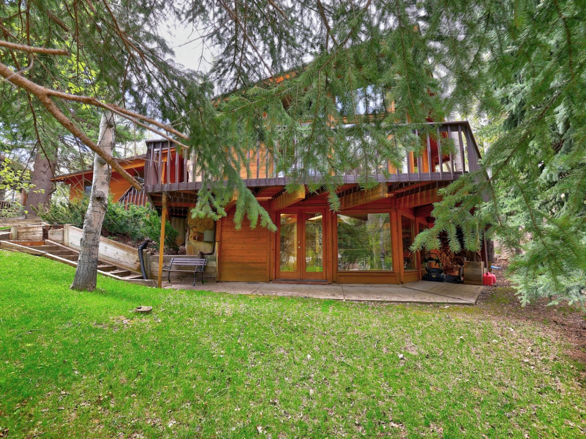 It’s easy to gather generations here. The walk out, ground level has an impressive game room with full size arcade games (DigDug, Asteroids Deluxe, Ms. Pac-Man, and Donkey Kong Junior), ping pong, and pool table for the kids to enjoy. The main level has a roomy living room for lounging with a book, a large kitchen with island for meals together, beautiful dining table, and an outside deck overlooking the tall pines and large yard.