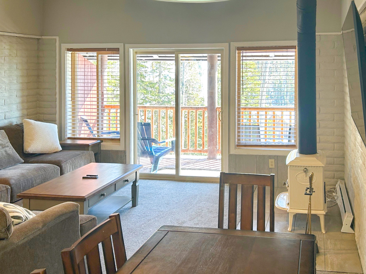 Our condos offer full kitchen, wood burning fireplace with fire starters and logs, WiFi, satellite TV, and balcony for enjoying views and hot morning beverages.