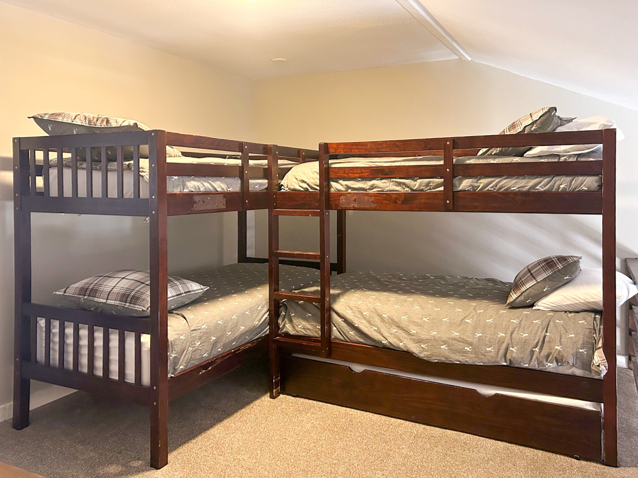 Sleeping loft with 4 bunk beds and 1 trundle bed