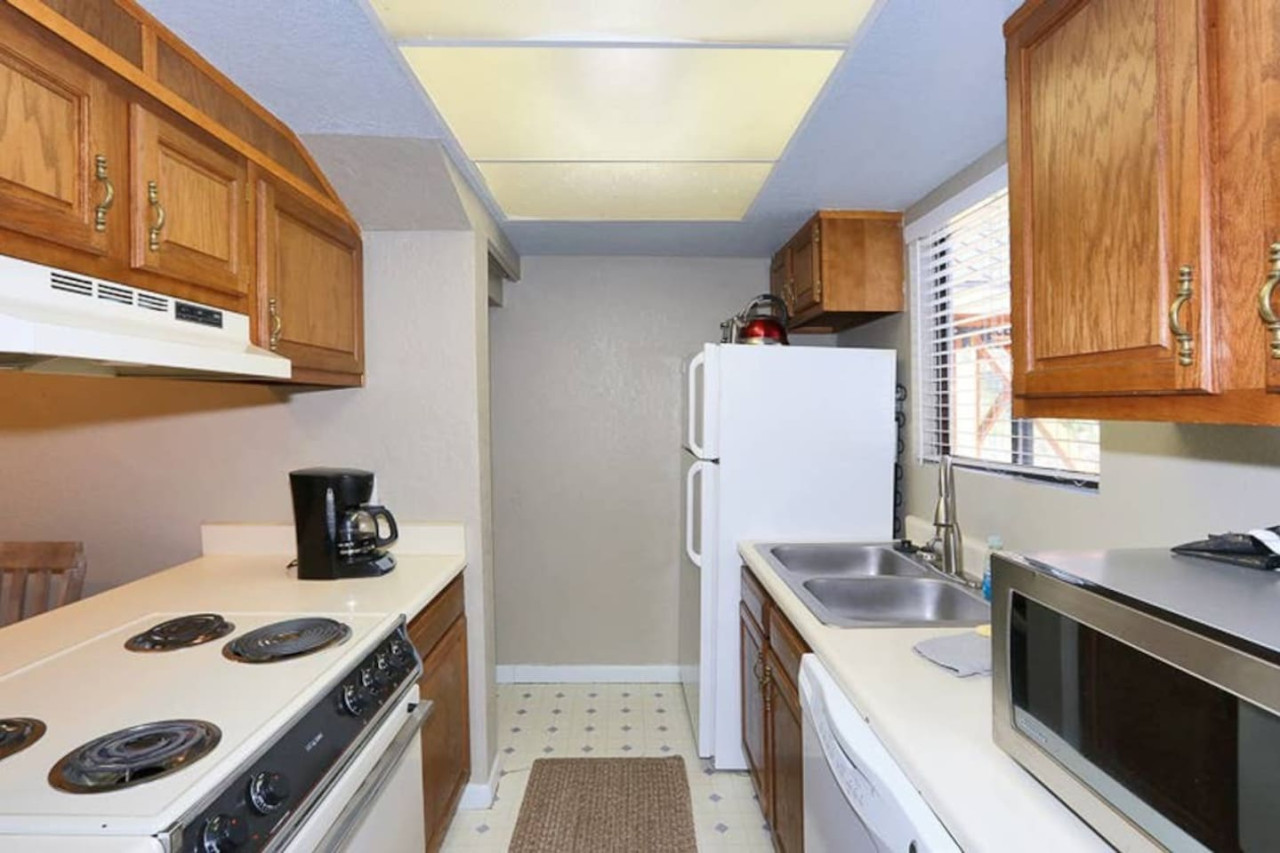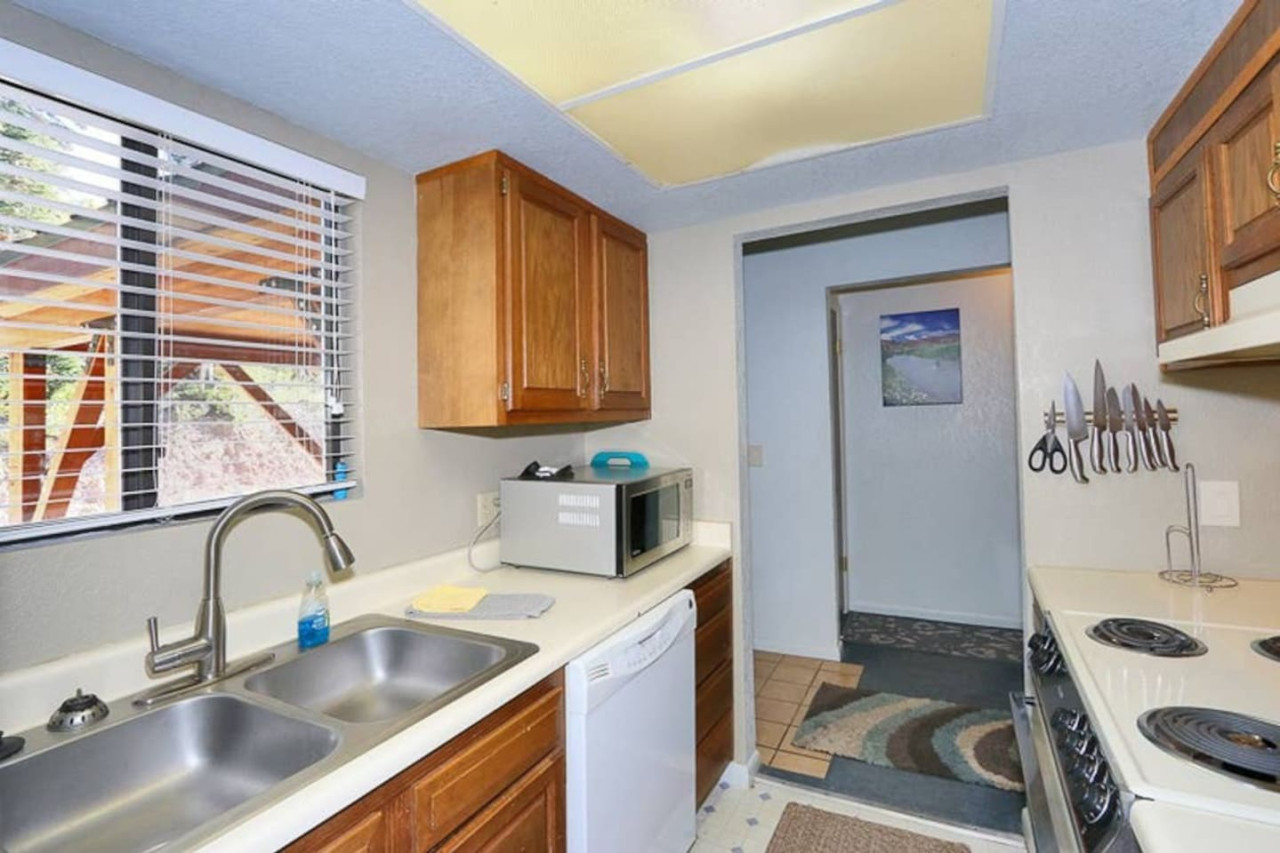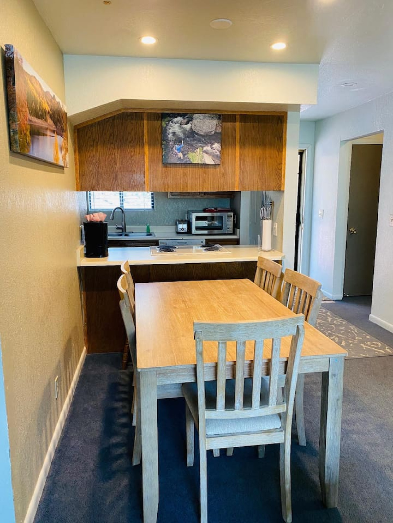 The kitchen provides everything you need to make yourself at home including a smartphone charging station, coffeemaker, pots and pans, serving ware, microwave, toaster and blender.