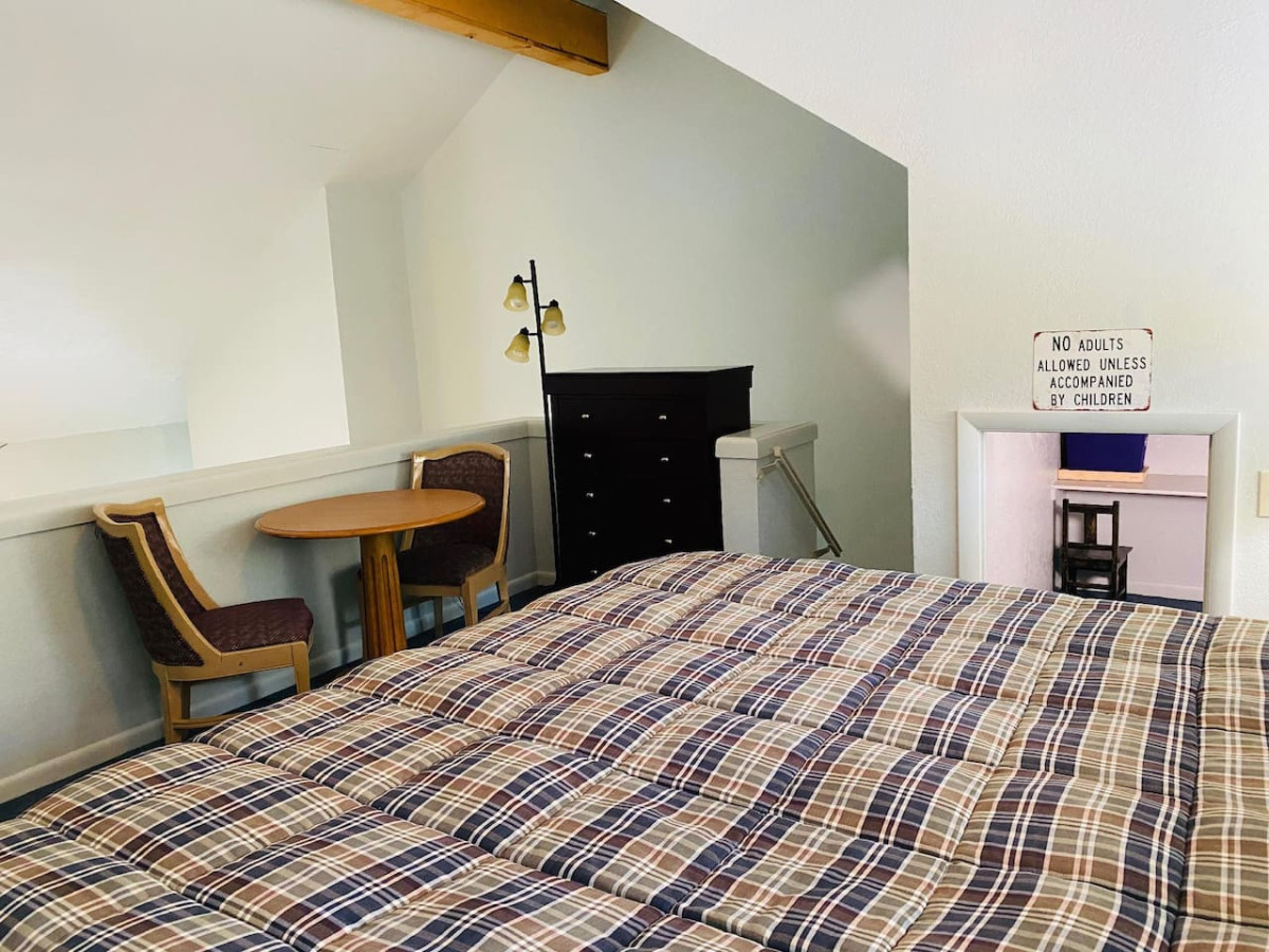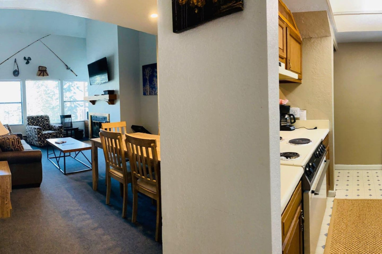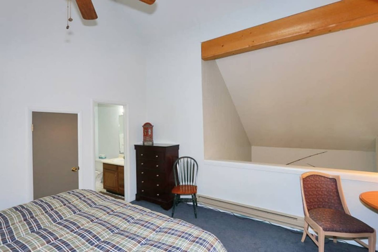 This ski-in/ski-out, 2 bedroom, plus loft bedroom sleeps 8. Two bathrooms - one up one down. Queen bed in the main level bedroom, king bed in the loft bedroom, queen bed in second bedroom upstairs plus a queen size sleeper sofa in the living room. WiFi, smart TV, wood burning fireplace with wood provided. AND, a kid bubby upstairs for the little one!